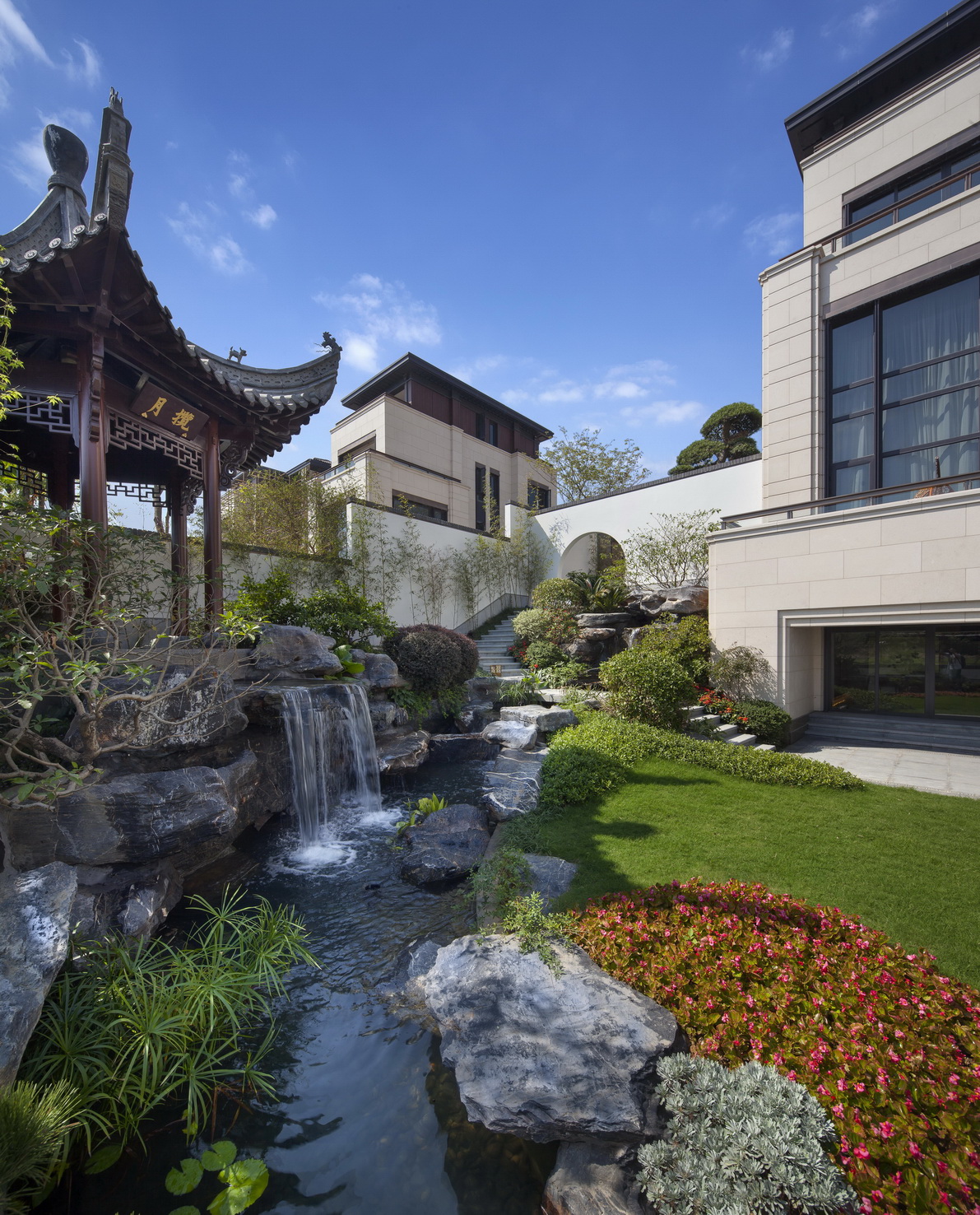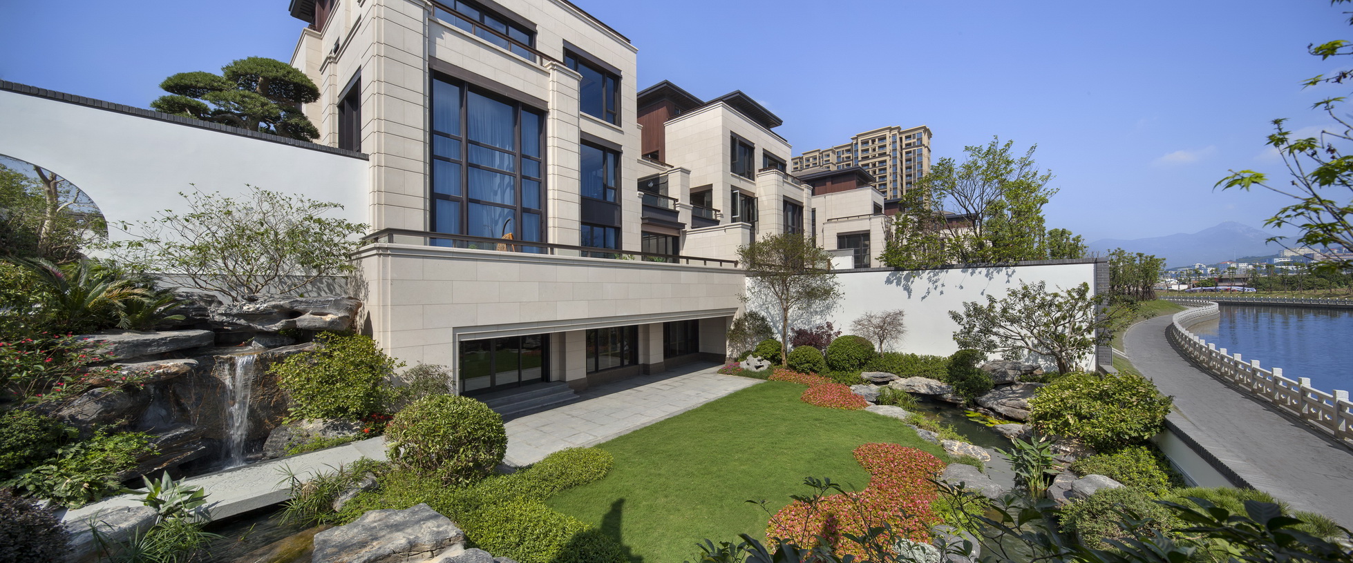 項(xiàng)目位于福州市倉(cāng)山區(qū)螺洲鎮(zhèn),展示區(qū)施工面積約為12000平方,是泰禾集團(tuán)中國(guó)院子系列產(chǎn)品。定位為新中式風(fēng)格。通過(guò)亭、廊、榭、疊石等中國(guó)元素的創(chuàng)新運(yùn)用,配以水景、霧噴、中式圍墻、門(mén)樓及各種奇花異草的融合搭配,營(yíng)造出美侖美煥的中國(guó)山水畫(huà)卷韻味,給人以身在畫(huà)中的感覺(jué)。