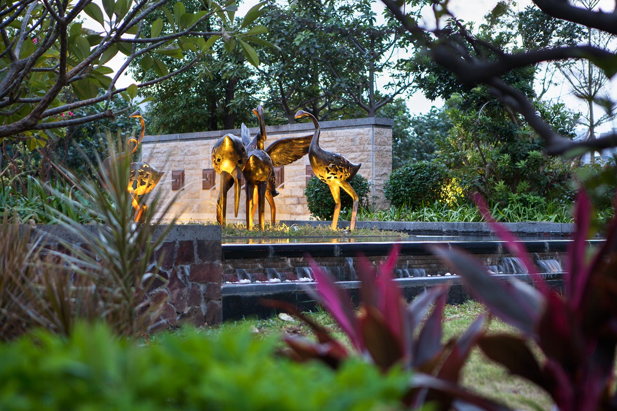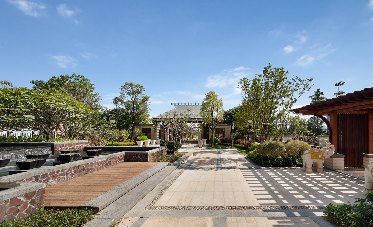 項(xiàng)目地塊臨近惠州江北CBD中心區(qū)域,東臨東江,坐擁1.5公里東江一線江景資源及市政規(guī)劃濱江公園?;诘锰飒?dú)厚的景觀資源,力求打造一個(gè)新東南亞風(fēng)格海濱豪宅標(biāo)桿住宅,具備傳統(tǒng)與現(xiàn)代、東方與西方人居藝術(shù),獨(dú)蘊(yùn)現(xiàn)代都市格調(diào)與經(jīng)典人文氣質(zhì),為居者帶來物質(zhì)與精神完美平後的居住感受,成為獨(dú)具海派風(fēng)范和惠州人文的新型豪宅典范。設(shè)計(jì)靈感來源于時(shí)尚仿生藝術(shù)的自然與藝術(shù)的結(jié)合,以石頭作為設(shè)計(jì)元素,通過系列的聚集、變形、拉伸等動(dòng)作,演變成場地的形態(tài)。景觀設(shè)計(jì)均采用與主題風(fēng)格呼應(yīng)的東菌亞風(fēng)格,大到空間打造,小到細(xì)節(jié)裝飾,都體現(xiàn)了對(duì)自然的尊重,和對(duì)手工藝制作的崇尚。材料應(yīng)用體現(xiàn)在具備東南亞園林代表性的黃木、青石板、鵝卵石、麻石,色彩采用宗教特色濃郁的深棕色、褐色、金色等沉穩(wěn)大氣的神色系。在自然中找景,在景觀中建筑住宅。
