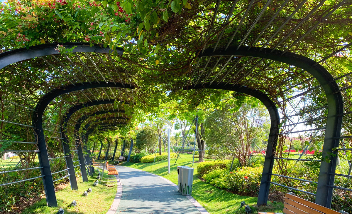 前海紫荊園以紫荊花為主題,整個(gè)園區(qū)占地約2萬5千平方米,共有6個(gè)品種的紫荊,其中“紅花羊蹄甲”、“宮粉紫荊”、“云南羊蹄甲”以及“嘉氏羊蹄甲”展示著不同地域紫荊文化的特色。香港區(qū)花紅花紫荊與素有南國櫻花之稱的宮粉紫荊為紫荊園主打的花,寓意著中國與香港緊密相連。而出生于艱難困苦環(huán)境的云南羊蹄甲則展示了其不畏艱苦,勇于拼搏的高貴品質(zhì),貼切地展示了深圳的城市精神。紫荊花每年有近6個(gè)月的花期,各色紫荊在園中爭相開放,營造出五彩繽紛、紫荊爭艷的效果。紫荊園還擁有2200平方米的花境,不同品種的花組合設(shè)計(jì)在一起,利用色彩、高低、形狀的差異營造出了一個(gè)唯美夢(mèng)幻的花園意境。