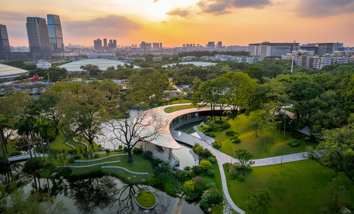云溪植物園秉承“一帶融山水、兩徑引兩庭”理念,以自然山脈為曲軸線,采用林木間伐、樹木造型、地形修整、補植花木,巧置景石等手法,重塑園景空間形態(tài)序列,系統(tǒng)展示國家植物園體系廣州植物遷地保護成果,講述中國植物故事,傳承嶺南傳統(tǒng)文化,打造出新嶺南園林與植物科學科普深度融合的典范。